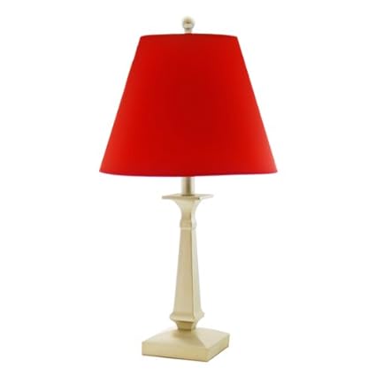I purchased 2 of these beautiful table lamps from Amazon for my office and I'm so glad that I did.  It was receiving a 5 star rating, and I understand why.  It was just as described and fits my décor perfectly.  The base is made of a brushed steel, which compliments the red lamp shade and the gray and black furniture in my office.  I placed one to go on my computer desk and the other on my scrapbook table.  I grabbed the lamps for $23.99 each with free 2 day shipping.  A bargain for these high quality lamps.